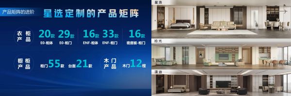 会上,王威 提及“无定制不整装,定制强整装强”,向行业各界展示了顾家星选四大进阶:产品矩阵方面,顾家星选提供了更完善的衣柜、橱柜、护墙、木门产品;店态展示方面,顾家家居于今年二月正式发布了顾家星选定制展厅和2.0融合展厅,更着重从分区结构、动线设计、场景一体化生活方式、交互服务设计等多方面进行生活方式的场景化空间呈现,突破传统思维,以专业化、场景力、沉浸式体验呈现出一站式购齐的整家优势;产品交付方面,依靠自身生产制造优势,顾家星选将自制定制产品的生产周期从15天缩减至9天,提供更快捷的产品交付服务;营销赋能方面,顾家星选提供更专业更强大的赋能团队,助力装企伙伴更好地提升业绩,掌握入口流量。