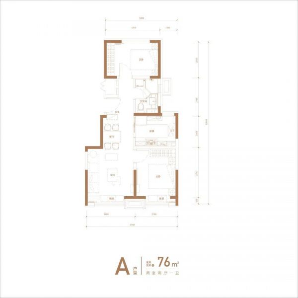 建筑面积约76㎡的两居,南北通透,而且两个卧室的面积都不小。