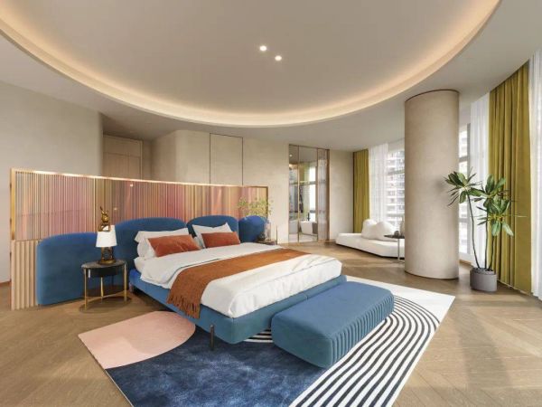 主卧室则延续外区空间的氛围,以暖色位主要基调,让卧室回到原始的需求,宁静及放松。