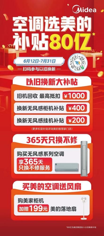 当前,美的积极响应国家“绿色行动·以旧换新”政策,投入80亿支持消费者以旧换新,同时叠加多重优惠活动,让消费者在享受健康舒适的同时,也能享受到实实在在的优惠。现在正是换新空调的好时机,选择美的无风感空调,就是选择了一个健康、舒适、智能的夏日新体验。