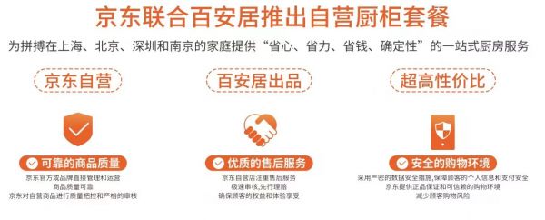 中国家庭厨房普遍狭小,能够最大化利用空间的定制橱柜一直是家装市场上的香饽饽。不过,对于这类定制非标产品,商家价格不透明,板材不环保,交易链路、生产环节、安装进度不明确,乃至拖延工期甚至跑路的情况防不胜防。针对上述痛点,今年初京东联合百安居推出自营国民橱柜套餐,凭借“环保+定价+服务”三位一体的自营标准,成为众多家庭省心省钱焕新厨房的热门选择。此次升级服务体验,将带给消费者更具确定性的保障。