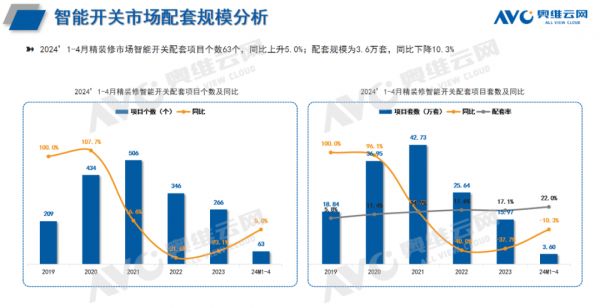 2024年1-4月精装修市场:智能家居系统、智能开关配置率实现双增长