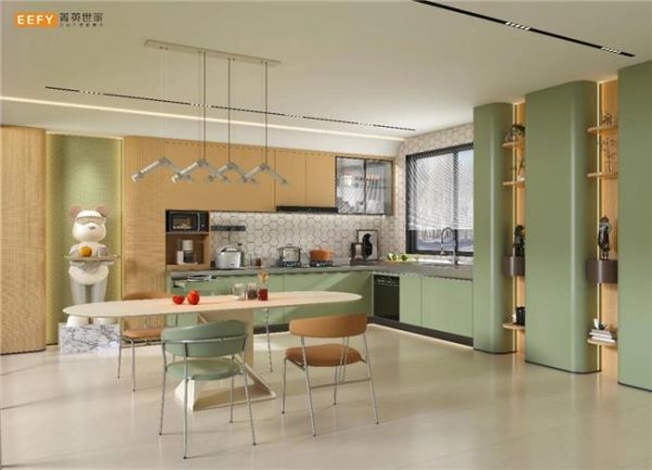 简约的设计和纯粹的色彩把厨房有限的空间扩展至无限的自由与舒适。颠覆传统不锈钢冰冷的外观,将自然森意带入家居空间。