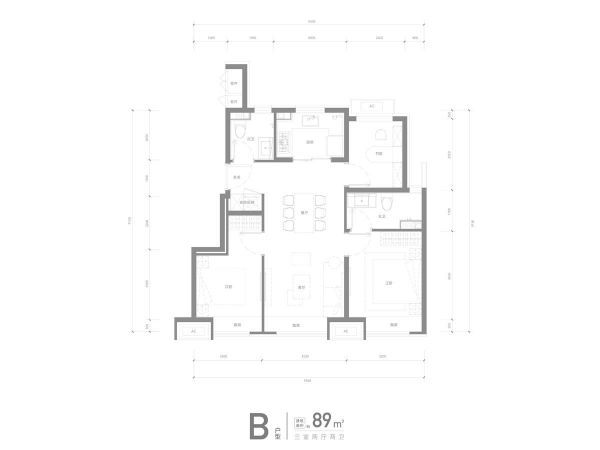 解析:89平南北通透三居,三面宽朝南,南向整体面宽9.5米,其中客厅面宽3.5米,可以保证室内良好采光;其中主卧是套房设计,主卫是明卫,通风性不错;厨房、餐厅、客厅一体化;进门处有家政空间,北向书房可以也当做儿童房,这户型是功能性三居,比较适合有孩子的家庭居住。