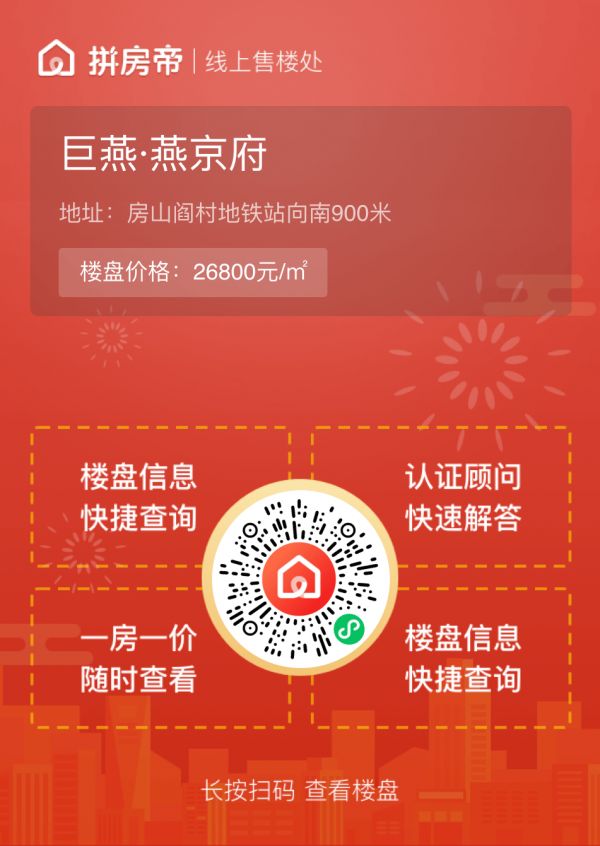 巨燕·燕京府项目开盘在即, 首期推售1#、4#、7#、13#、15#、17#、18#号楼,户型涵盖76㎡两居、89㎡三居、108㎡三居、128㎡三/四居、149㎡四居,均价约26800元/㎡,比较时候在丰台科技园、丽泽等地上班的人群在此置业,以及本地改善人群。