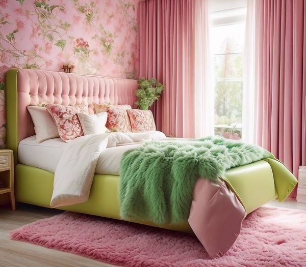虽然粉色有时可能让人感觉过于甜腻,但翻糖粉作为今年春夏的流行色之一,相较于高饱和度的橙色锋芒不显,相较于纯粹粉色更有活力,高级感十足。这种颜色与柔和的调色板搭配,给人愉悦的感受,在室内营造出健康活力的氛围。