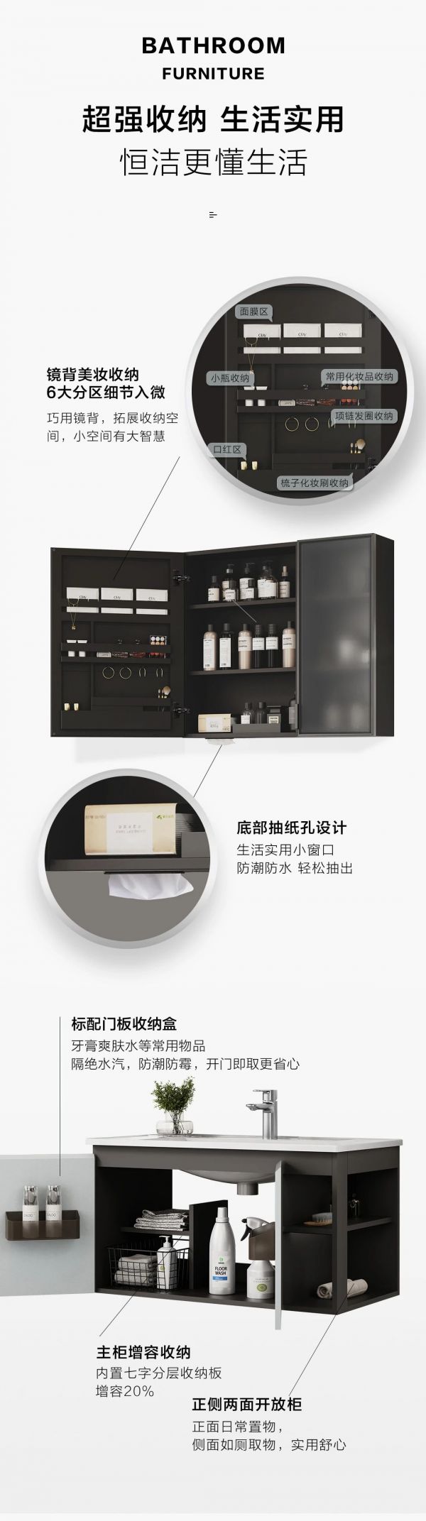 恒洁琉璃系列BC6123A浴室柜丨万顷琉璃 超强收纳秀外慧中