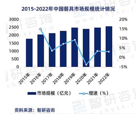中国人有浓厚的家庭情节。家庭生活是社会生活基础。社会文明进步,消费者对生活品质的追求提高,催生消费市场对餐具的种类、样式、功能等需求不断增加。根据智研咨询推出的《2023-2029年中国餐具行业市场行情动态及投资潜力研究报告》,2022年我国餐具市场规模达到2567.1亿元,同比增长3.15%。餐具行业的发展趋势是向着高端化、品质化、多样化、环保化、智能化和个性化方向发展