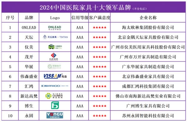 2024中国医院家具十大领军品牌榜单(不分先后)