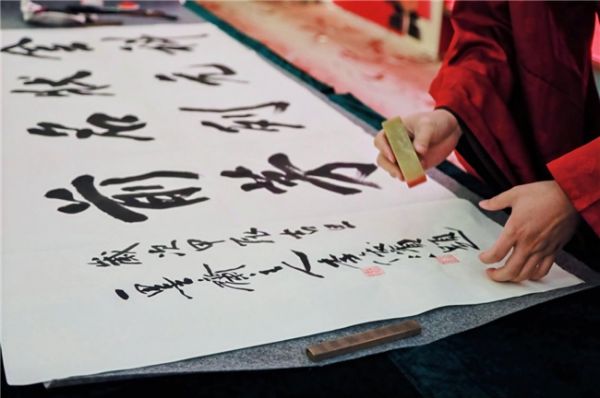 在状元赐墨环节中,品牌特邀广东省书法家协会会员、佛山市书法家协会理事一墨斋主人李俊滨亲临现场,即席挥毫写下「金科状元,名列前茅」,每一笔每一划都充满了力量和生命力,字里行间流露出金科品牌的活力与冲劲。