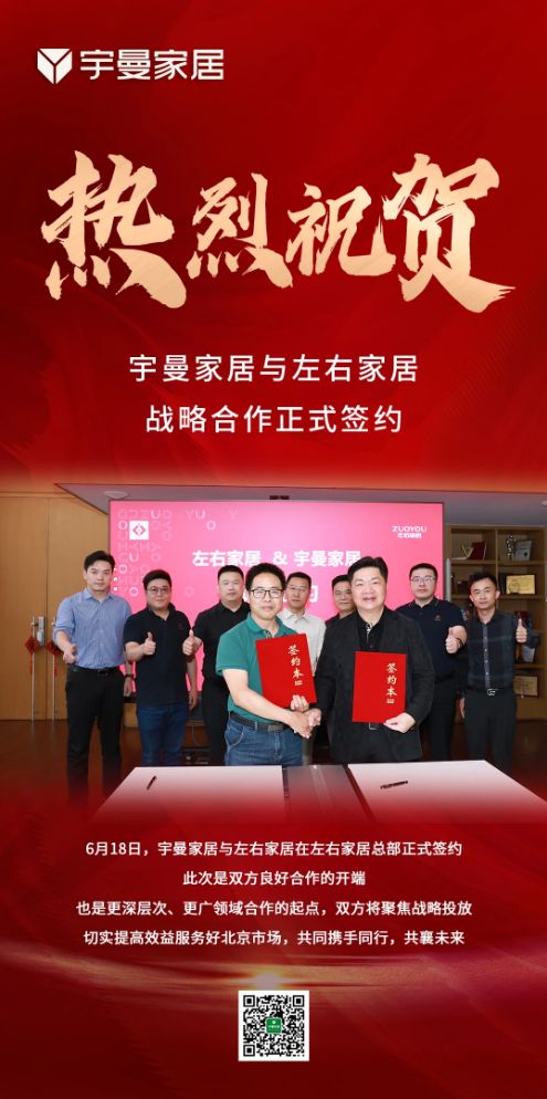 6月18日,宇曼家居与左右家居战略合作签约仪式在左右家居深圳总部举行,双方正式确立战略合作关系。