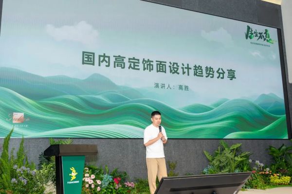随着消费方式升级、大众审美意识提升,家装风格也迈入了多样化、个性化时代,除了居住功能,人们更关注生活空间的健康属性与个性化审美需求。发布会上,两位杰出的设计师杨志伟和高胜分别带来了主题为《国际流行饰材饰面及设计风格趋势》和《国内高定饰面应用设计趋势分享》的精彩演讲。杨志伟深入剖析了国际流行饰材饰面及设计风格的趋势,引领观众领略全球设计前沿的魅力。同时,他表示,未来,环保、智能材料将会成为主流,个性化定制需求增长;简约、复古风格也将持续流行,跨界融合成新趋势;新兴市场潜力巨大,行业竞争日趋激烈。