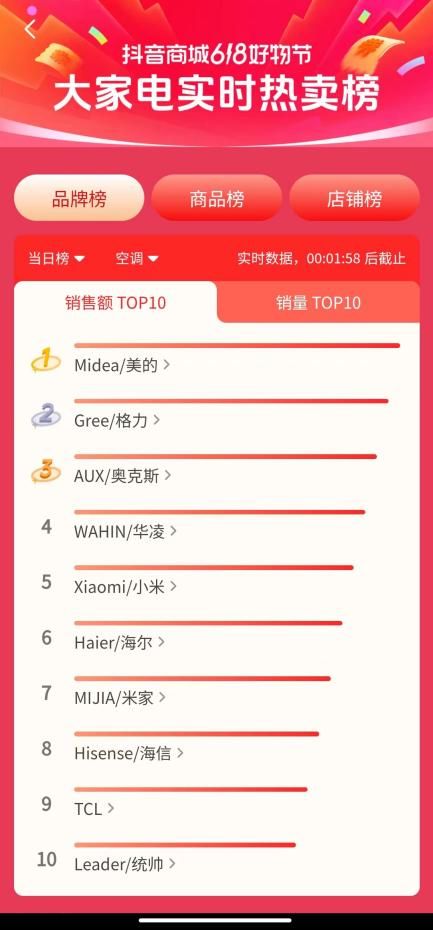 618年中盛典夺魁,美的空调天猫平台销售额排名第一