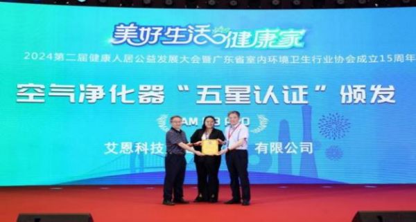 ▲艾恩科技IAM M8 Pro、广州新颐 KJ500F空气净化器“五星标识”颁发