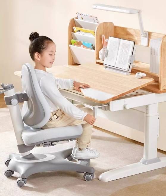 光明园迪专业儿童学习桌椅,拥有创新小C口,让孩子坐在学习桌前,身体前进7CM进入小C口,双臂自然下垂至桌面,学习姿态最标准。全视阅读架可上下前后移动,将书本放置在阅读架上,将左手压书,右手写字的左右用眼,改为上看下写,而且视野范围可以控制在最佳的15-30°;看书时眼睛距离书本50公分左右,写字时眼睛距离桌面33公分,上下用眼,一远一近产生视距差,锻炼睫状肌,呵护视力健康。同时,光明园迪学习桌均有倾斜桌面设计,学习桌右侧的角度显示器会显示桌面倾斜度数,对应不同学习场景。0°手工,12书写,30°阅读,40°绘画,精准匹配每种学习模式,提升孩子专注力。105和120尺寸还设有陪读区,父母陪读、辅导作业更方便。