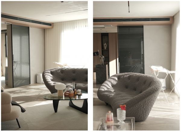 在与大金联系上后,宋女士对于中央空调出风方式、如何结合内装等了解到了更专业的知识,尤其是可自由定制的回风口,能完美配合宋女士想要的极简装修风格,最终与大金沟通后,宋女士决定在客厅和餐厅采用大金中央空气系统的“超窄吊顶室内机”,35cm极窄进深节省吊顶,客厅不压抑;冬季瀑布式暖流,直达脚底更舒适,夏季康达效应气流,冷风不直吹,下出风侧回风的设计,可自由搭配黑色拉长回风口,美观与效果兼顾的效果也令夫妻俩十分满意。