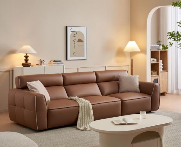 真皮生巧沙发,以西瓜红配色点缀夏日风情,焕发空间活力。进口头层黄牛皮材质,触感如婴儿肌肤般细腻温润,厚实紧密,长时间倚靠也无褶皱痕迹。经典分段式靠包,内里填充恒压高弹海绵,平衡受力,打造零压力靠感,久坐办公族福音。60cm加宽大座深,三层海绵饱满高回弹,打造蓬松包裹感,软而不塌,沉浸式感受家居惬意感。宽大斜切扶手,留出更多落座空间,可倚靠可枕躺,搭配可移动脚凳,解锁多种休闲新姿势。