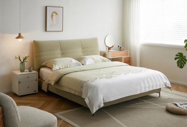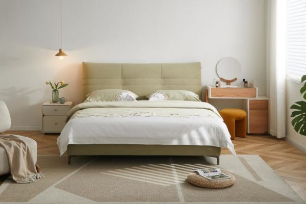 可爱猫耳造型立体饱满,时尚有型;柔和清溪绿,彰显夏日活力感,四季感受夏日清爽。猫抓绒布面料,短密平整,触感柔滑,抗污易清洁,无惧萌宠上床。三角力学床靠,一体落地式支撑,安全感拉满。105°黄金倾斜角,倚靠放松自在,赶走一身疲惫。床侧收纳口袋,收纳书籍、手机,物品拿放顺手,储物更灵活。