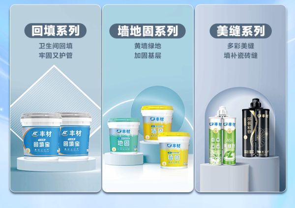 会上,全面升级的丰材产品体系惊艳亮相。除现有防水系列产品外,重磅推出回填、墙地固、美缝三大系列新品,基本实现防水需求全面覆盖、全面守护。同时在产品包装方面实现升级焕新,打造统一视觉风格,增强视觉辨识,以全新面貌亮相市场。