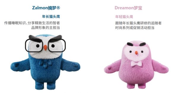 △Simmons®席梦思品牌吉祥物猫头鹰智者Zalmon摘梦®与小猫头鹰Dreamon梦宝,他们不仅是智慧的象征,守护人类睡眠的使者,传递睡眠知识的同时,力求为广大消费者带来非凡高品质的睡眠体验。
