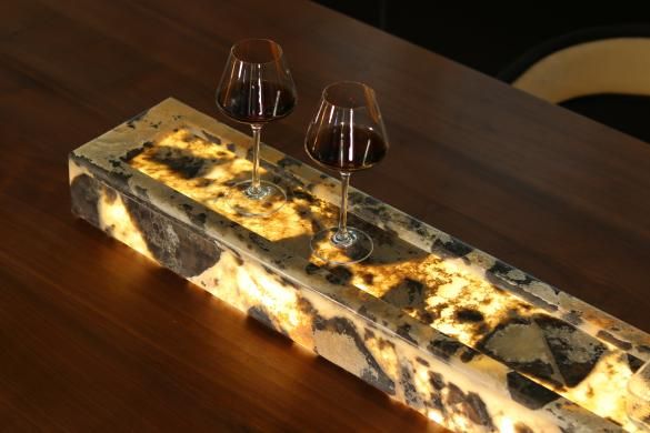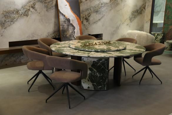 流淌的玉石金光书写着尊贵和豪华,恢宏大气的纹路彰显着大家风范,欧若拉精工奢石甄选独i一无二的奢石纹理,奢石餐桌通过流畅的造型设计,在美学上玩味不同材质的搭配创意,碰撞出精妙绝伦的平衡感,搭配精致的餐椅,成为每道佳肴美丽的背景板,营造出尊贵的用餐氛围。
