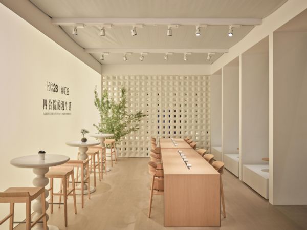 值得一提的是,在这座四合院中还有一间特别打造的咖啡馆HC28 café,人们可以在长桌围合而坐,也可以在吧桌彼此对视,既给足了私人空间,又能拉进人与人的距离。隐藏在院子里的“漫生活”便以这种方式呈现开来。