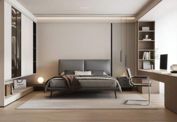 1、增加空间层次。你们家的卧室是不是跟这个一样,明明什么都有了,但是还是觉得缺了点什么?家具全部都在视平线以下。没有丰富的层次何来氛围呢?这个的解决方法,是要给空间增加有高度的软装。如落地灯、或是装饰画,有高度的家具都可增加,进一步提升空间的立体感