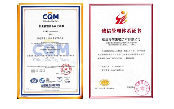 自创始以来,福建洛东凭借多年深耕生物科技领域取得的综合实力,先后获得国家重点环境保护实用技术A类证书、国家火炬计划产业化示范项目证书、国家级高新技术企业、国家级知识产权优势企业、福建省“专精特新”中小企业等荣誉。其中,相关技术获得了4项国家发明专利及20项国家实用新型专利。