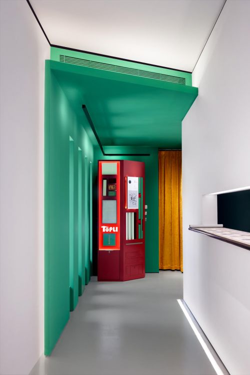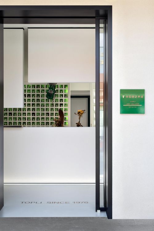 我们建议将展厅称为壁纸艺术馆,因为展示产品和讲述企业发展史都是十分重要的,而且可以兼容。设计从企业logo寻找灵感,并通过回顾公司历程来衍生出了代表特普丽壁纸的超级符号"T"。