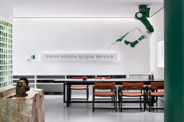 特普丽壁纸总部附近就是一个采石场,每次路过都让人感到震撼。在改造过程中,我们融入了很多石头的元素,与极简的白色形成了新旧对撞,也体现了对地域性的尊重和本土材料的挖掘。