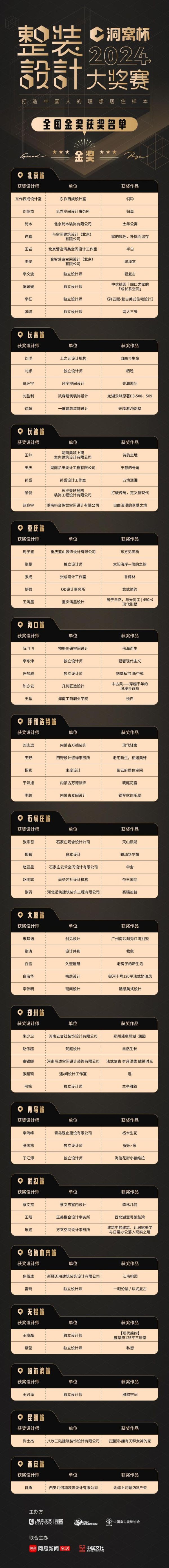 最终,经过空间合理性、功能实用性、设计创新性、环保性、美学性等多维度综合考评,大赛评选出550名获奖作品,现将全国金奖获奖作品名单公示如下:(排名不分先后)
