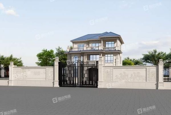 别墅外墙铺贴鸿运当头瓷雕壁画,寓意业主运势大好,事业前途无忧,出门都有贵人相助,遇见困难都能逢凶化吉,为家族带来吉祥与福泽。