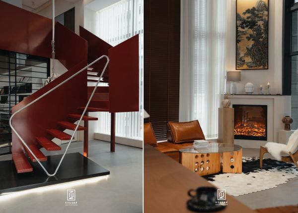 红色造型楼梯陈设其中营造出高级时髦感,让人不禁上去体验。