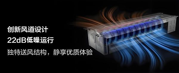 TCL小蓝翼新风风管机采用升级的贯流风扇,搭配创新蜗舌导流风道设计,优化送风方式,实现22分贝静音运行,比普通风管机噪音更低3分贝;同时值得一提的是,该产品与普通风管机相比实现了更远距离送风、更好的制热效果和更小的安装体积,带来更加惬意的使用体验。