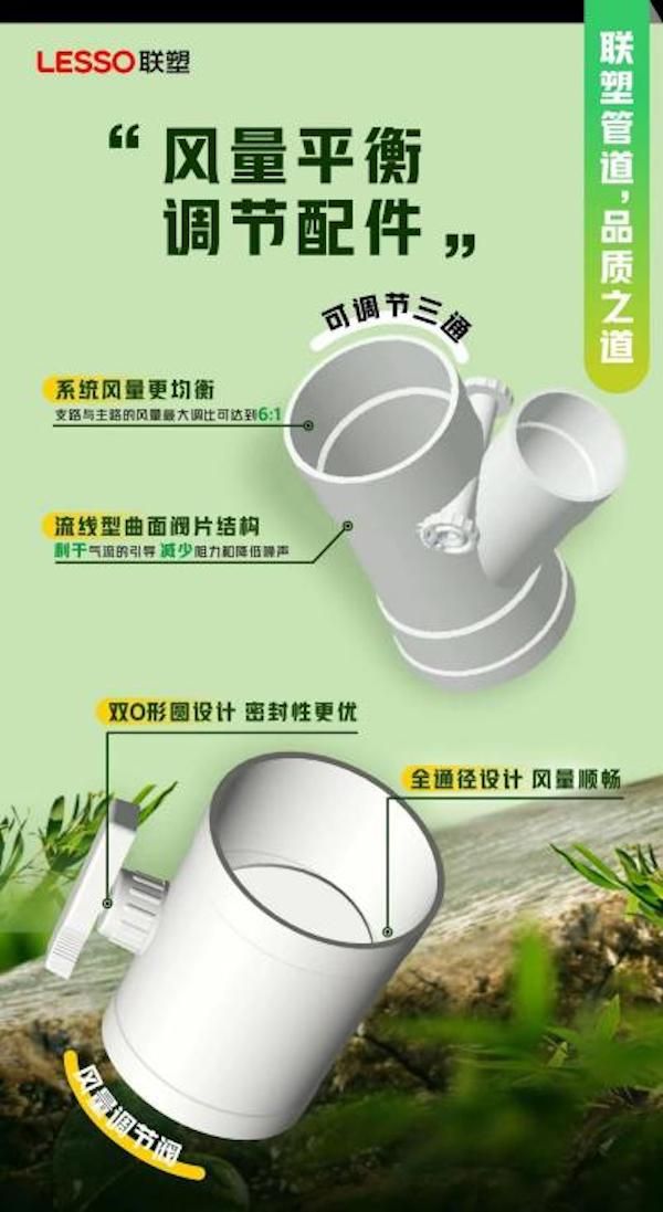 联塑新风系统PVC专用管道输配系统,以科技的力量守护您和家人的健康。它不仅仅是一个通风设备,更是您家中的一片绿色森林,让每一口呼吸都成为对生活的美好礼赞。选择联塑,选择一个清新、宁静的家,让健康与舒适伴随您每一天。