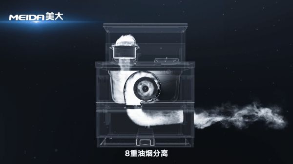 针对油烟排不出的问题,美大智能变频集成灶新品M907创新后置油烟分离技术,采用8重油烟分离,烟管油管独立,吸力不损耗,烟道不积油,厨房无异味。并搭载传承经典的仿生蜗式风机,排烟更顺畅。