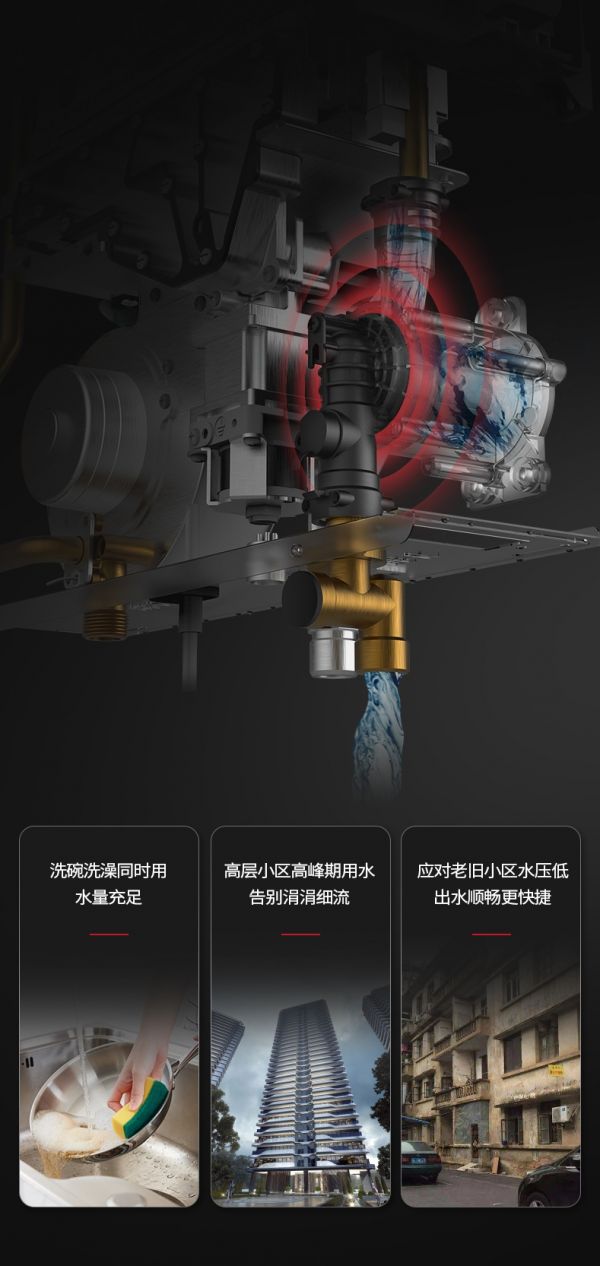 并且在静音零冷水科技的帮助下,热水器可以提前加热管道冷水,实现热水即开即用,14m更长的扬程及循环管能满足100-200㎡户型的零冷水需求。