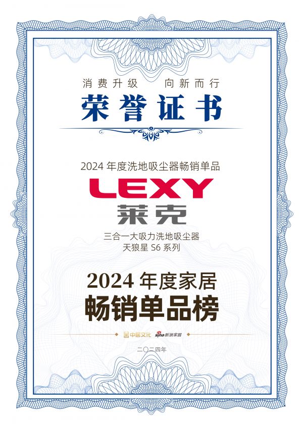 其中,莱克电气股份有限公司提报的莱克天狼星S6 Plus三合一大吸力洗地吸尘器因其优异市场表现,获得2024年度洗地吸尘器畅销单品荣誉。