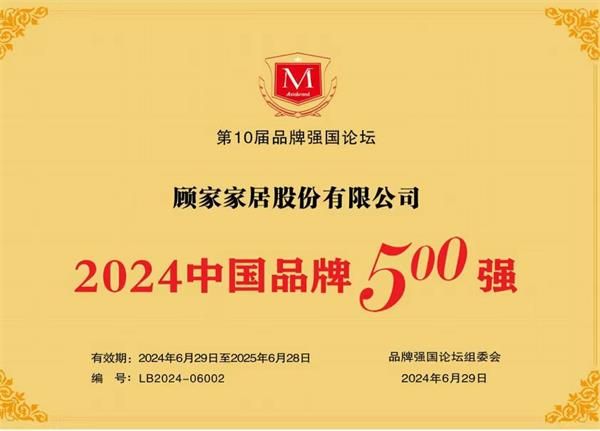 这次荣获“2024中国品牌500强”,是顾家家居品牌再次升级的新起点。未来,顾家家居将持续打造品牌价值,绽放中国家居品牌与时俱进、勇于突破、持续创新的独特风采。