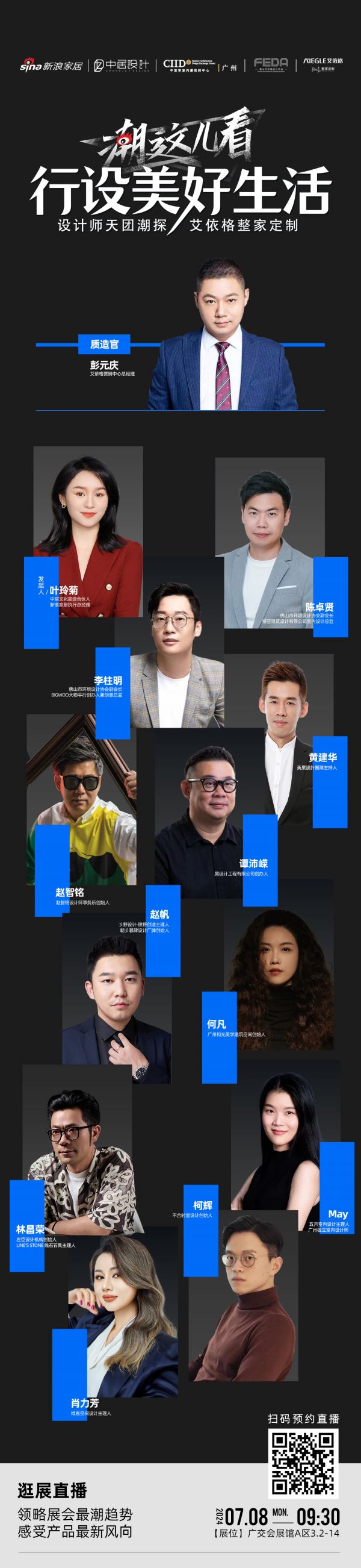 7月8日,由中居文化高级合伙人、新浪家居执行总经理叶玲菊发起,带队的“潮这儿看”设计师天团将走进艾依格展区,从行业、设计和媒体视角,剖析行业新趋势,为消费者展示前沿的时尚元素和家居潮流。此次设计师天团由佛山市环境设计构协会副会长、博亚建筑设计有限公司室内设计总监陈卓贤,佛山市环境设计协会副会长、BIGWOO大物平行创办人兼创意总监李柱明、黄巢設計團隊主持人黄建华,赵智铭设计师事务所创始人赵智铭,昊设计工程有限公司创办人谭沛嵘,彡野设计·肆野创造主理人、朝彡暮肆设计厂牌创始人赵帆,广州和光美学建筑空间创始人何凡,左臣设计机构创始人、LINE’S STONE 线石石具主理人林昌荣,不合时宜设计创始人柯辉,五月室内设计主理人、广州独立室内设计师May,维恩空间设计主理人肖力芳等超十位设计师组成。