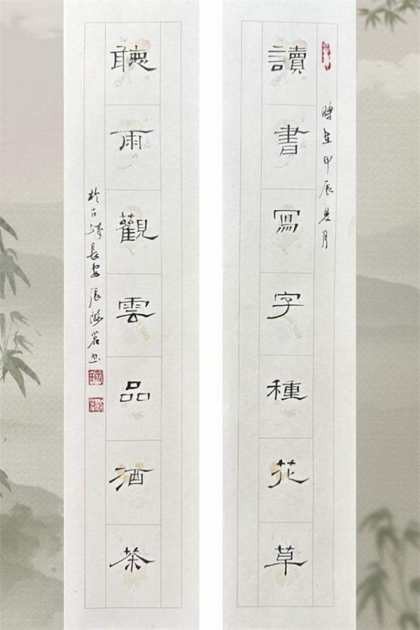 璐茗先生虽研习碑帖,却师古不泥,他的隶书既不同于曹全碑的柔和飘逸,又有别于礼器碑的瘦硬刚健,承习乙瑛碑沉着厚重的基础上融入自己的个性,笔势稳健干脆,清劲秀雅,革新的同时又不失法度。显而易见,这是他铮铮铁骨中的细腻柔情。