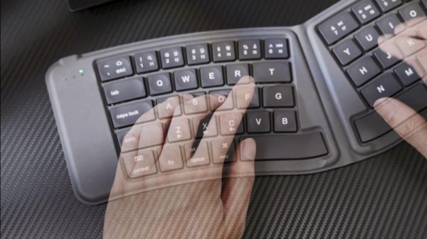 这把山业折叠键盘采用了V型设计,符合人体工学原理,以往的折叠键盘虽然也足够轻薄,但在这方面还是差点意思。