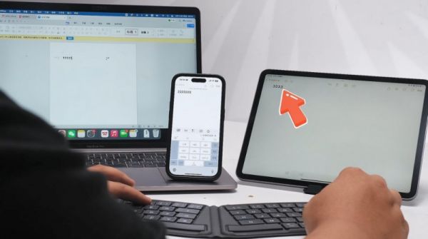 键盘是蓝牙连接的,展开即开机,可以同时连接3台设备,唤醒和切换都非常快速方便。