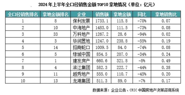 2024年已经过半,虽然土地市场呈现“点状回暖”态势,但房企投资拿地方面却未有明显起色。