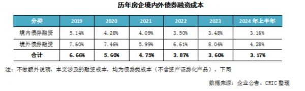 另据克而瑞统计,上半年房企整体新增债券类融资成本3.17%,较2023年全年下降0.43个百分点。