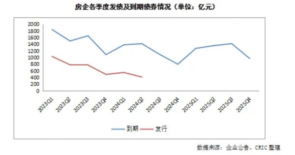 除了融资方面,房企资金压力的另一面则来自巨量的债务,而已实现债务重组的房企仍有再次违约的风险。克而瑞统计显示,上半年房企债券到期规模达2799亿元,其中一二季度的期债券规模均超1300亿元,三季度债券到期将超过1000亿元。而暂无偿债压力或完成债务展期及置换的企业,未来也面临同样的债务压力,如果投资端、销售端和融资端继续不见起色,2025年债务压力甚至要大于2024年。