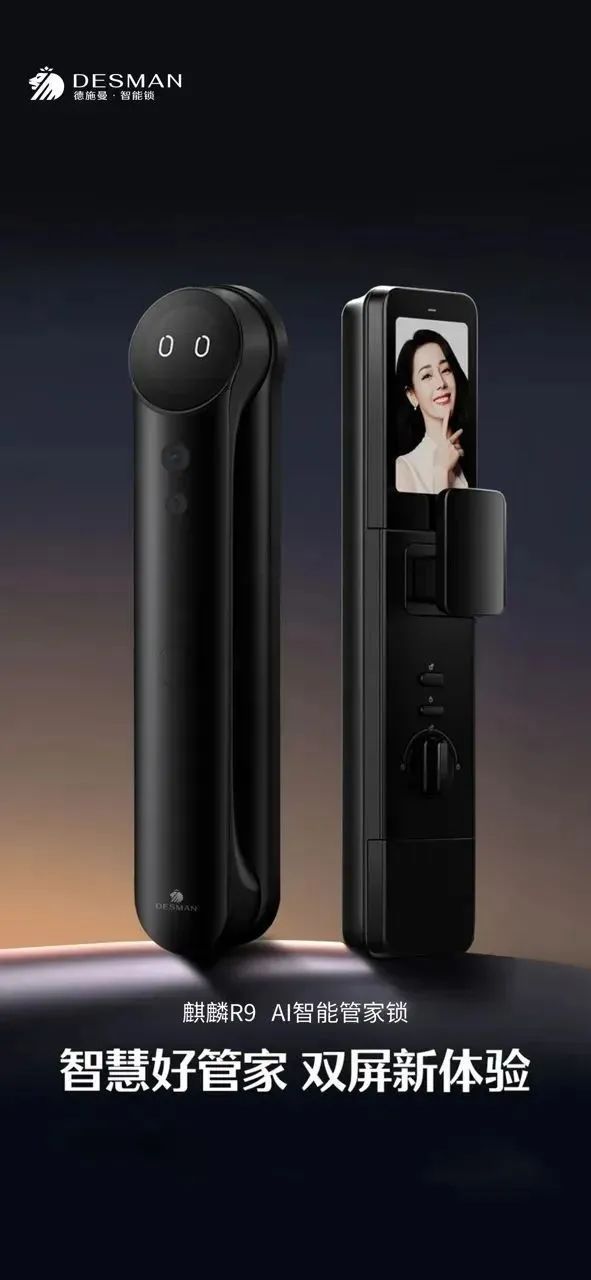 而德施曼的另一款获奖旗舰产品——麒麟R9,是行业首款AI智能管家锁,以其独特的AI智能管家功能,为用户带来了全新的智能生活体验。这款智能锁不仅拥有行业首创的3D弧面玻璃设计和AG蚀刻工艺,更在猫眼系统上实现了跨越式升级,为用户提供了更加清晰、流畅的影音体验。同时,麒麟R9还具备11种解锁方式,能满足用户在不同场景下的需求。