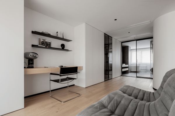 书房,是心灵的栖息地,也是知识的海洋。蓝天豚在此区域采用了简洁有力的黑色钢板壁架,为书籍和陈设物品提供了充足的展示空间。翻开一本心仪的书,满目余光皆是温暖与美好,仿佛整个世界都安静了下来。