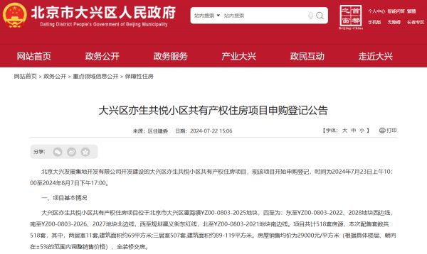 南五环旁瀛海镇的共产房项目大兴发展·亦生共悦将于7月23日上午10点启动网申登记!