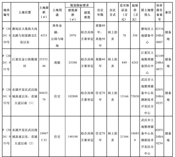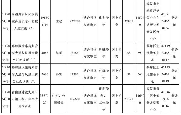 7月23日,武汉市自然资源和城乡建设局发布关于2024年拟供地项目清单的公告(第四批)。